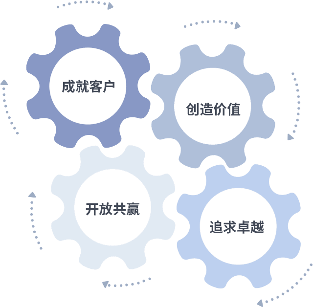 成就客户是一切决策的出发点,,,,创造价值是衡量所有工作的标准,,追求卓越是4688美高梅做事做人的态度,,,开放共赢是4688美高梅的格局也是最终的结果。。。。价值观的齿轮环环相扣,,推动着组织里的每个人不断向前。。